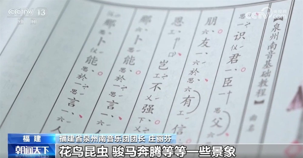福建省泉州南音乐团团长庄丽芬称:“我们现在有3000多首古曲谱,是以清唱、对唱、琵琶弹唱等形式来呈现。南音的谱主要描写的是四季景色、花鸟昆虫、骏马奔腾等一些景象。”